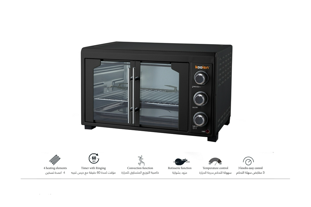 سهل الإستخدام والتنظيف - توزيع متساوي للحرارة - مزود بالشواية - 4 اعمدة التسخين - مؤقت لمدة 60دقيقة مع جرس تنبيه
