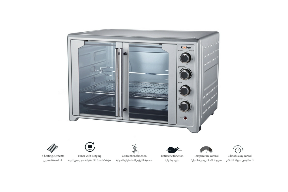 سهل الإستخدام والتنظيف - خاصية توزيع المتساوي للحرارة - مزود بالشواية - 4 اعمدة التسخين - 3 مقابض سهلة التحكم - سهولة التحكم بدرجة الحرارة