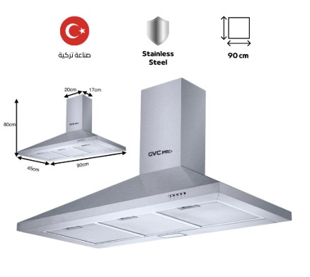 شفاط GVC PRO هرمي 90 سم استيل - GVCH-90