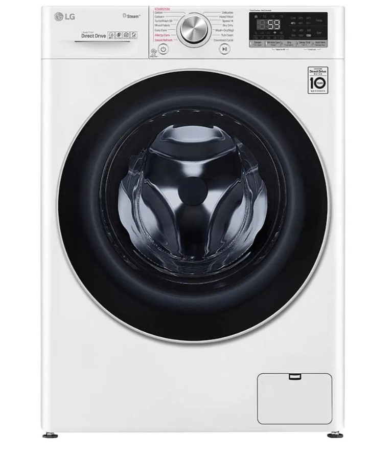 غسالة ال جي اتوماتيك امامية كومبو تنشيف 100% 8 كيلو غسيل 5 كيلو تنشيف ابيض كفاءة أ