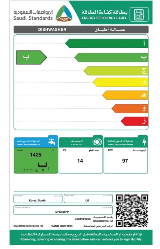 جلاية صحون ال جى 3رفوف 14 مكان الرف الذكى .اقل ضجيج .دورةتربو .محرك الدفع المباشر .بخار .واى فاى فضى بلاتينى كفاءة ب DFC435FP