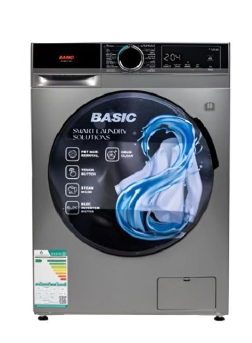 بيسك غسالة أوتوماتيك تحميل أمامي غسيل 13 كغ تجفيف 8 كغ فضي