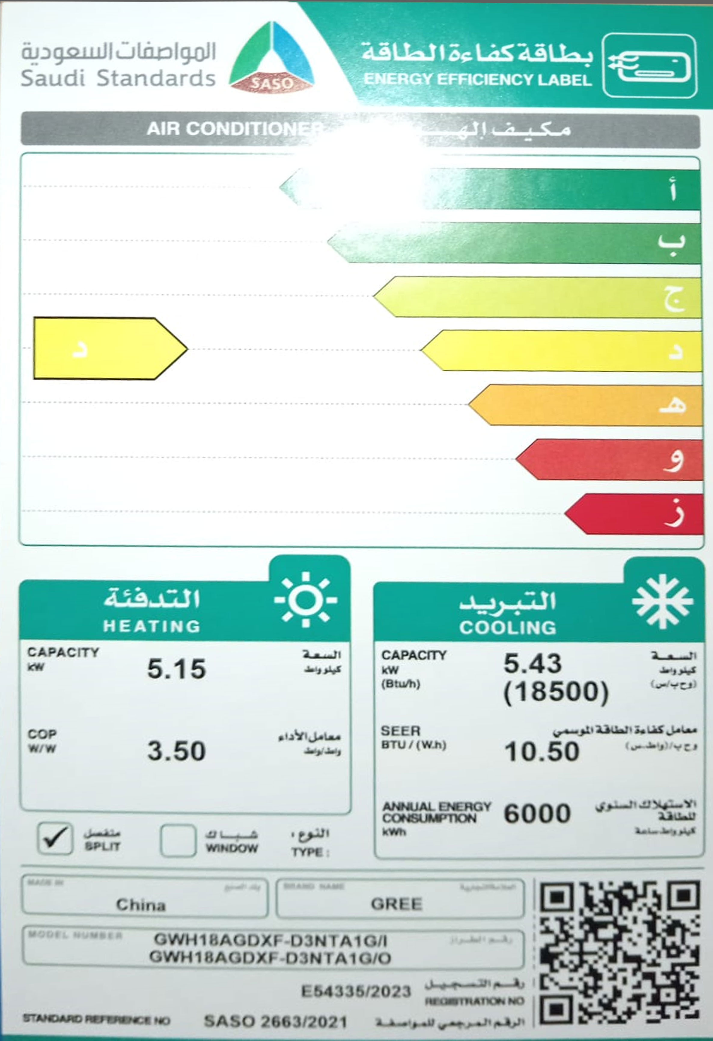 مكيف جرى جدارى بولار واى فاى قدره 18500 وحده - 18 بارد GWC18AGDXF-D3NTA1F/I - GWC18AGDXF-D3NTA1F/O