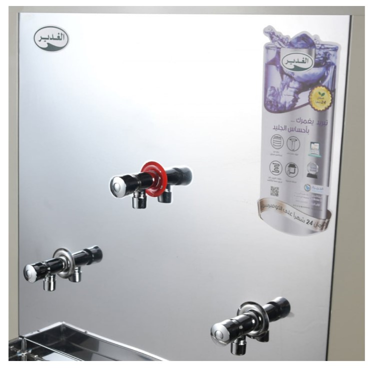 مزود بفلتر مياة - خزان من استانلس استيل - ملفات التبريد خارج الخزان منعا للتاكسد - مزود الصنابير المياة مصنوعه من النيكل