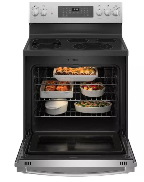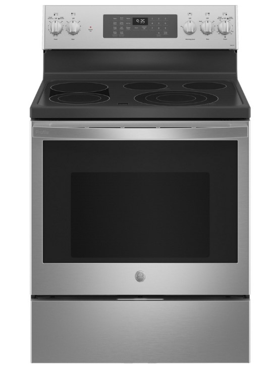 فرن كهرباء جنرال الكتريك 5 عيون سيراميك - مع مروحة - التنظيف الذاتي مع خيار التنظيف بالبخار - التنظيف الذاتي التلقائي - الساعة الإلكترونية ومؤقت المطبخ