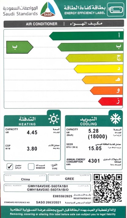 مكيف جرى جدارى اي بلس واى فاى انفرتر قدره 18000 وحده - 18 حار بارد GWH18AVDXE-S6DTA1B