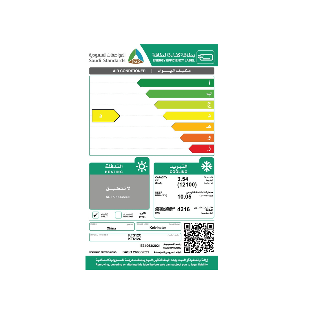 مكيف اسبليت كلفنيتور سعه التبريد 12100 وحده KTS12C
