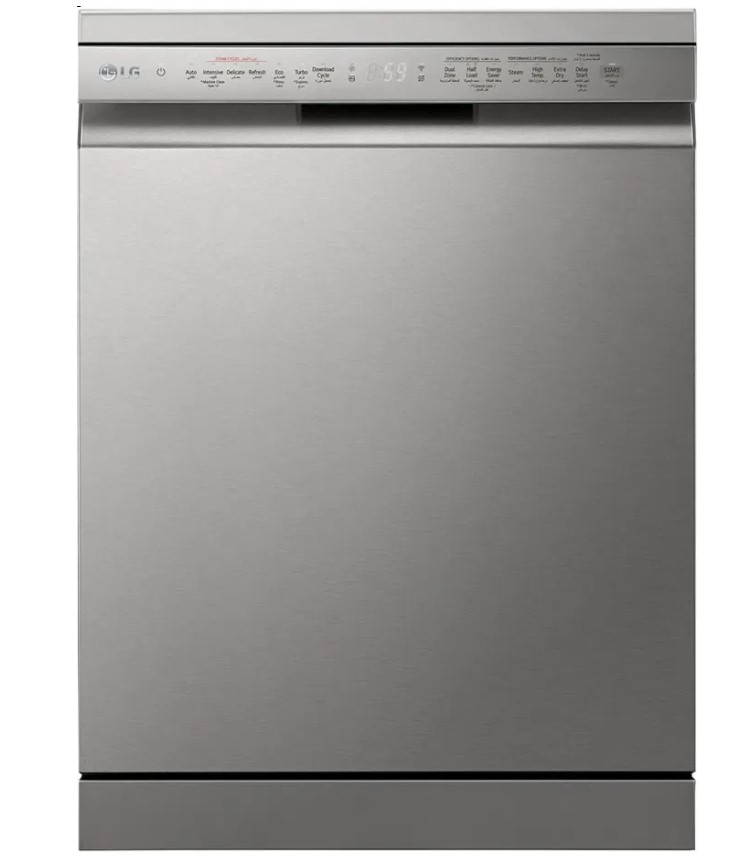 جلاية صحون ال جى 3رفوف 14 مكان الرف الذكى .اقل ضجيج .دورةتربو .محرك الدفع المباشر .بخار .واى فاى فضى بلاتينى كفاءة ب DFC435FP