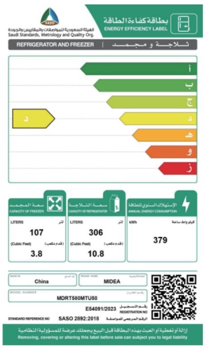 ثلاجة ميديا سعه الثلاجه 10.8 قدم سعه المجمد 3.8 قدم سلفر MDRT580MTU50