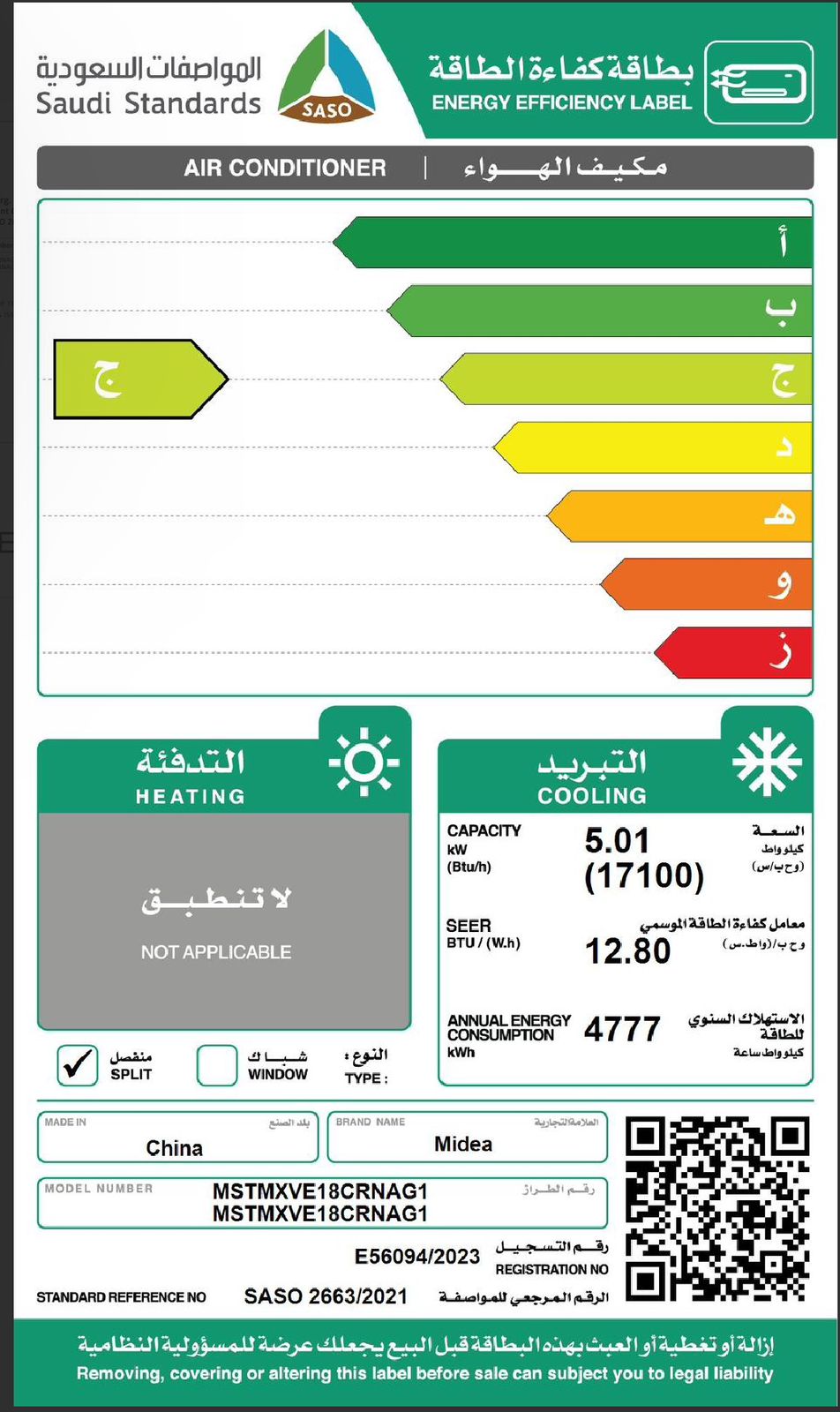 ميديا مكيف سبليت – ميشن اكستريم - 17100 وحدة، بارد فقط ، واي فاي انفرتر، فلاتر هيبا و الترا لتنقية الهواء بنسبة 95%، موفر للطاقة بنسبة حرف (ج )، تشخيص ذاتي، أبيض -