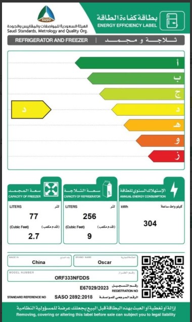 ثلاجة اوسكار 11.7 قدم - ORF333NFDDS